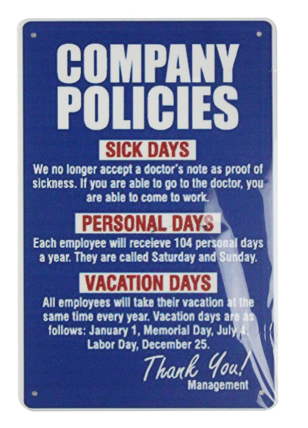 Company Policies tin metal sign 0669a